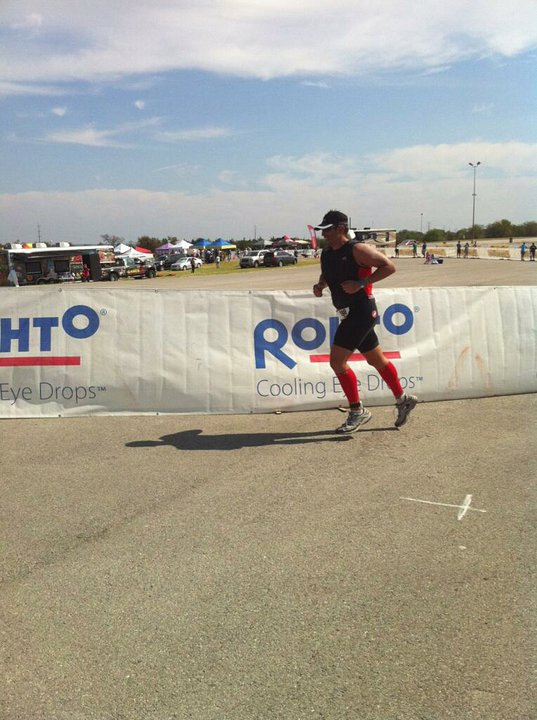 Ok, I’ll set the scene. It’s 67.3 miles in approx. and 3 miles separate me from the finish line. We have 2 hills remaining and then the corral, horseshoe shaped final mile and the best part, the arena finish! I know my fraternity brother and good friend, Derek Parlee is waiting for me in the last mile to kick my butt into gear and get my feet moving for the strong finish, so I have to represent, not only for the folks who have helped to get me here, but to the SRQ family and the BAMF’s. You know who you are! I find myself speed walking coming into this last 3 mile stretch and begin to positively berate myself for doing so. “Hello me, its me again!“ “Why are you walking?, you flew your ass to Texas to take a walk? Pick it up and get it done!” I am a little surprised at how the run course for the final 3 miles has kind of turned into a Zombie march. If only I could get everyone to start moaning, “BRaaaaaaaaaaaaaaains”, then it would be legit! But I digress, I have juice in the tank, so my feet are moving and although my pace is slow, to quote Forrest Gump, “If I was going somewhere, I WAS RUNNING!” Talk about feeling like a rock star, there were about 3 or 4 others who were in line with similar paces, so we shadowed each other until we reached the final mile, then I picked up the pace a little. I hit the last hydration station and grabbed my usual cup of Gatorade, cup of water and cup of ice, pouring the water in the ice, and speed walking until I finished the ‘ade and H2O. I walked an extra 50 yards eating the ice and pep talking myself to finish exactly as planned. As we like to say, “It was time to DO WORK!”