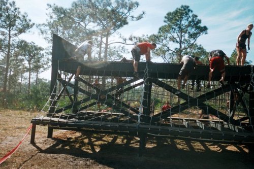Add in some climbing obstacles, over-under’s, cargo nets, fallen trees and a lake dousing and things get real!