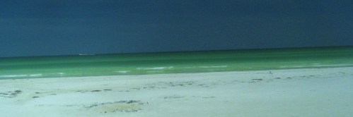 As we meandered down the soft silky sands of Siesta to the shoreline, an interesting dynamic was taking place. The Olympic distance competitors were starting on the South end of the main beach, while the Sprint and Duathlon racers were going to start near the North end of the main beach. I imagine this would create some overlap, but all in all, it seemed to work out pretty well. As we were entering the gulf to begin our sprint swim, some of the olympic swimmers were headed our way as well, but just like a school of fish in the open water, we all assimilated and continued towards our goal.