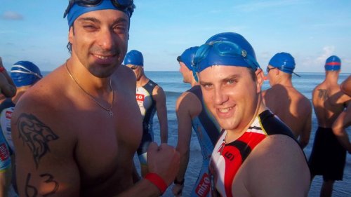 For me, the swim was solid, although it was congested to start with some beginners swimming all over the place, so I made an immediate decision to go wide and swim near the beach bouys and just keep a strong pace. 7:00 minute swim time was satisfactory for me and soon enough my feet felt sand and I was running towards the shore.