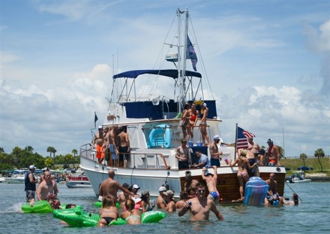 Many come to The Cove prepared with food and drinks, and some people even barbecue on the back of their boats. Jell-O shots and mixed drinks are consumed by groups of adults while parents with children sip on juice boxes and look for sea urchins and other creatures that crawl along the bottom. During special weekends like Tubapalooza – an annual tradition for the last five years, the Fourth of July, the Suncoast Super Boat Grand Prix and Labor Day weekend, the festivities grow, with more boats, people and louder music blaring. It’s a party.