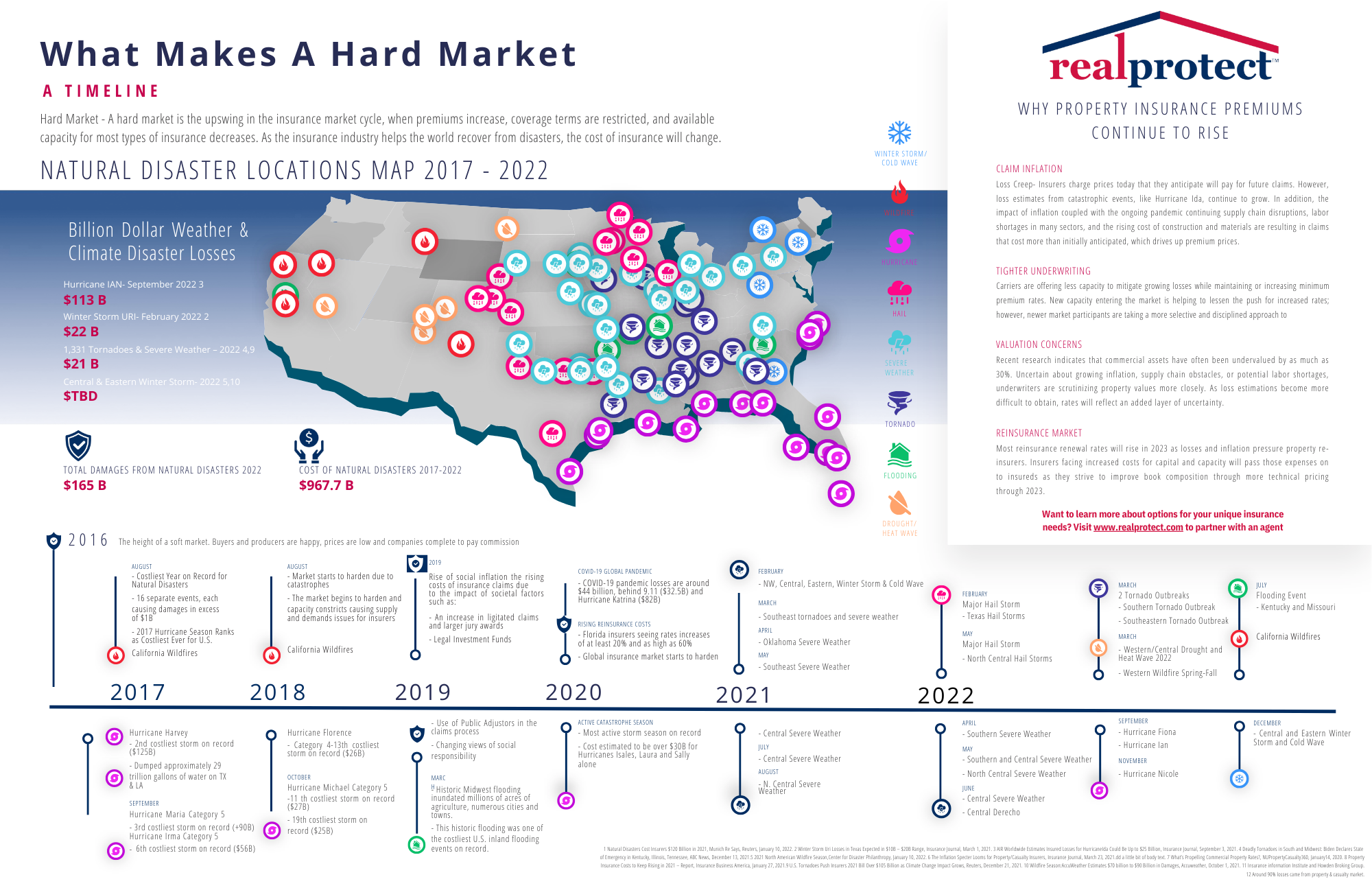 This is the number one question that we hear every day while helping our clients, and the question that many of you have likely been asking for a very long time – where is this coming from, and where will it end? The answer is that six core issues affect the property insurance marketplace as a whole at a national level, which are the drivers for the turbulence (in some cases mayhem) that we are seeing, with other ancillary issues often at play in more local and regional settings (state by state, places such as CA, TX, FL, etc.).