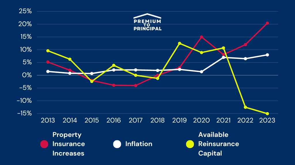 Reinsurance is a behind-the-scenes piece of primary insurance that most people do not even know exists, and those who do may not have an in-depth working knowledge of the function. Reinsurance exists so that primary carriers (the carriers you buy insurance from – think Travelers and Liberty Mutual) can offload a portion of their risk on the insurance that you purchase from their balance sheets, by way of reinsurance, onto someone else’s balance sheet, the reinsurance carrier. This is insurance for the insurance company so that when losses meet or exceed a certain threshold, they can tap into this insurance and thus are not forced to solely pay the totality of a claim. The availability of reinsurance is crucial to the capacity (total amount of insurance that a carrier can offer to the marketplace) and cost of the insurance that property owners and operators purchase, and in the past 18 months, there has been a $60B+ gap in the needed reinsurance and the available reinsurance in the marketplace, causing a severe shortage.